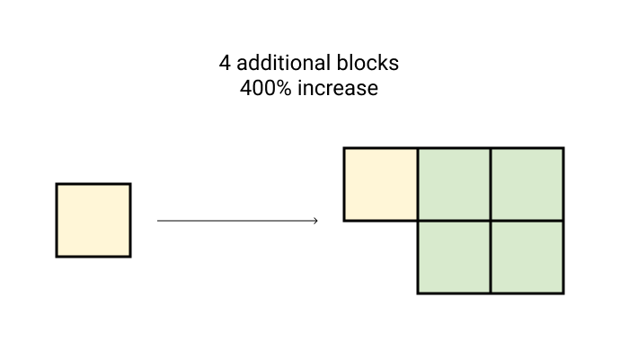 4 Blocks as a 400% increase in size